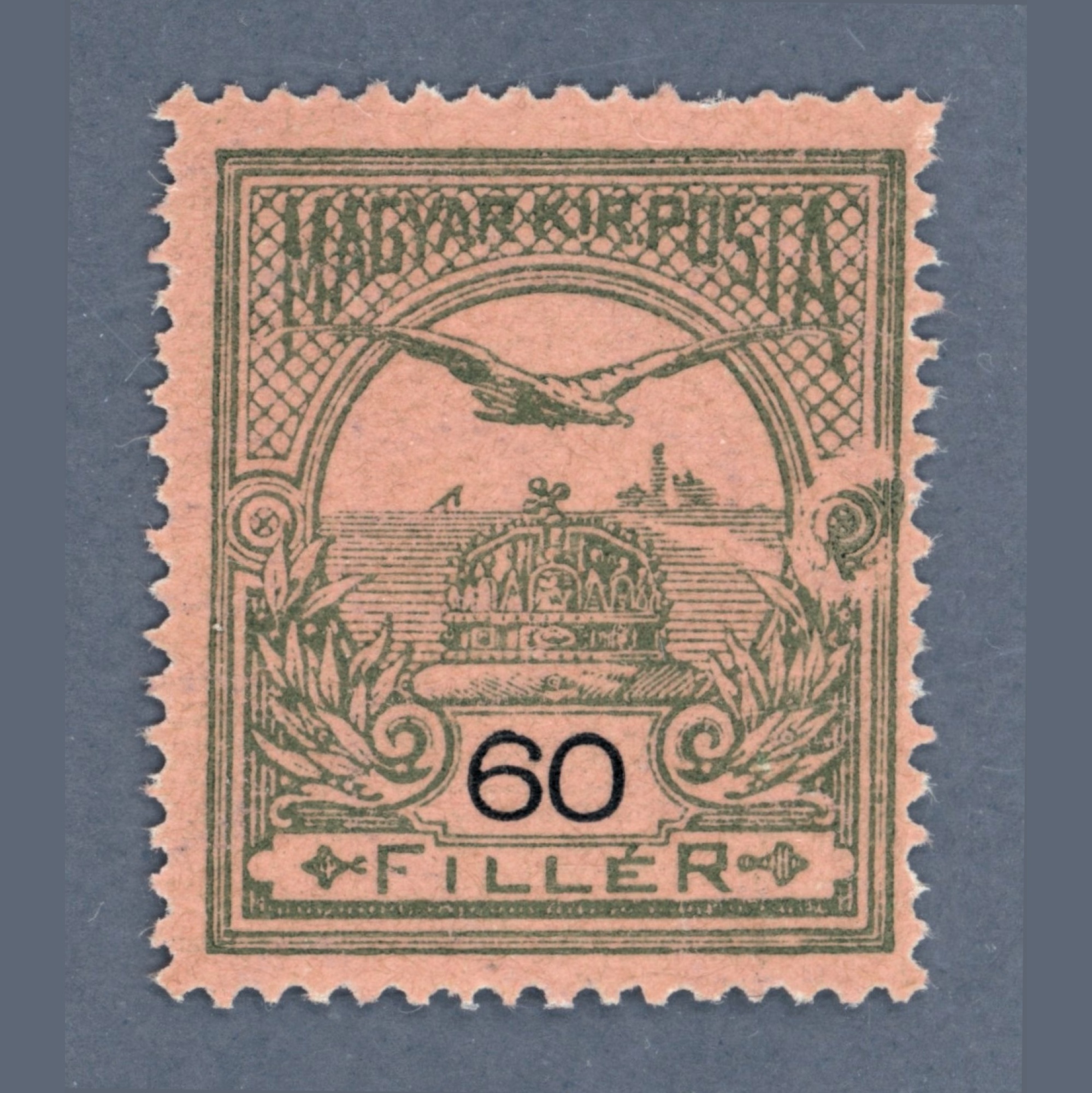 1913 Hungary – Turul 60 fillér mint hinged * stamp with significant printing error on the right side
