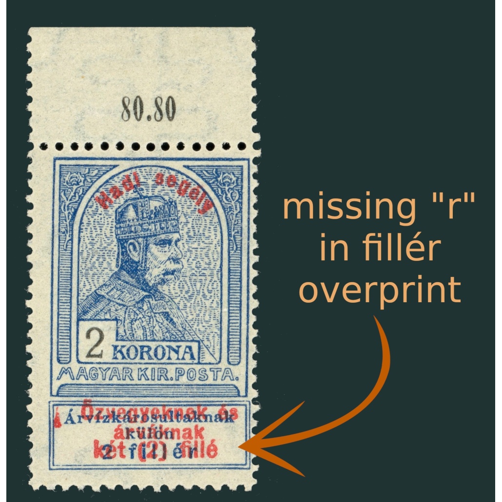 1914 Hungary – Millitary Aid I. 2 korona MNH** “fillé_” misprint