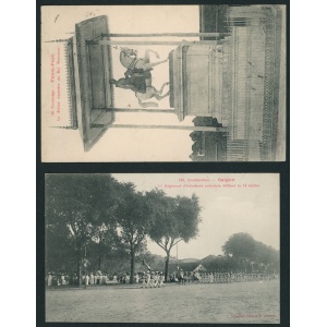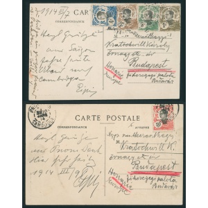 1914 Indochina – two postcards with different combinations sent to Hungary addressed to Károly Kratochwill from a trip around the world