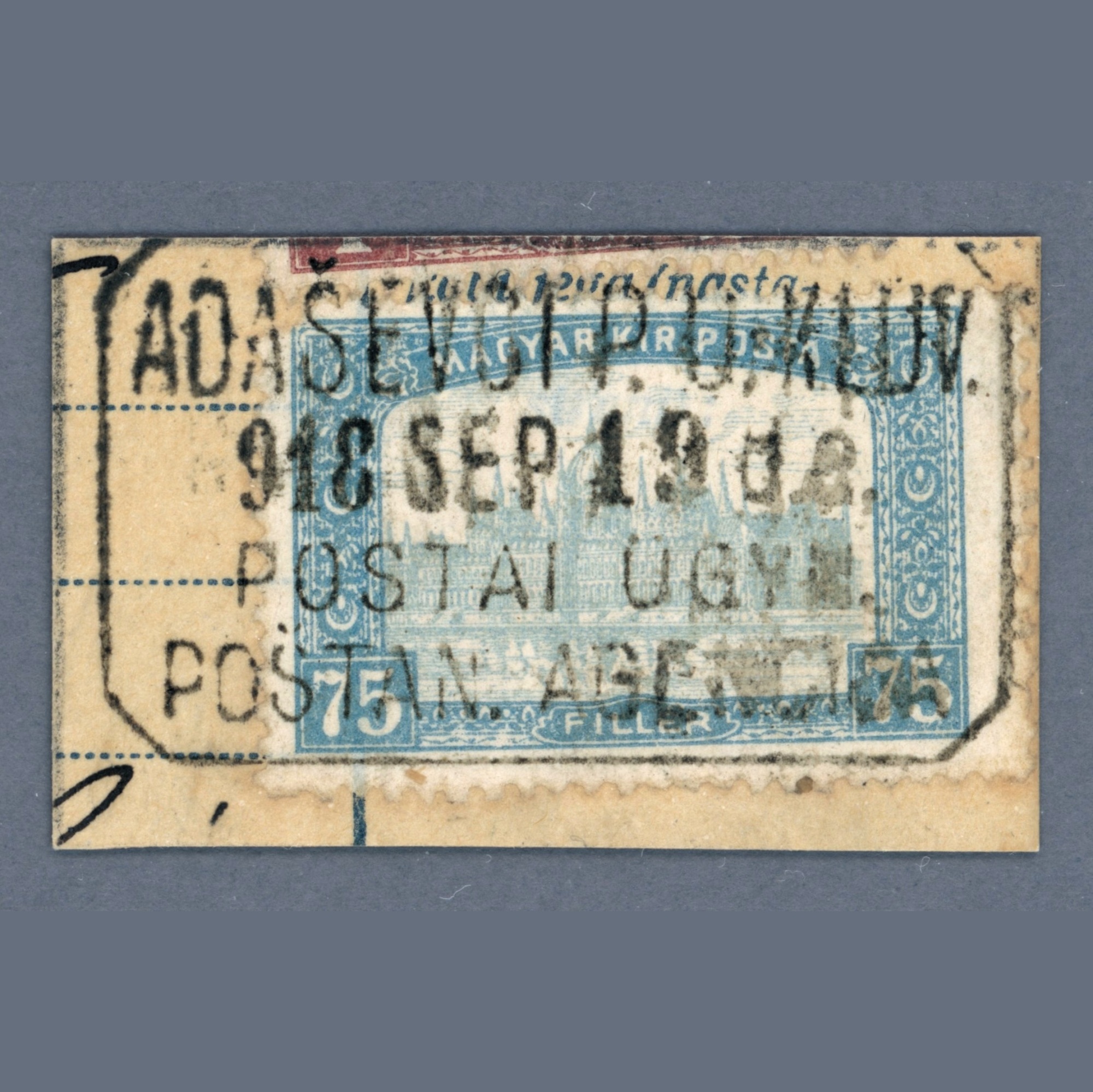 1918 Hungary – ADAŠEVCI P.U.-KLDV. postal agency postmark | PÜ: RR
