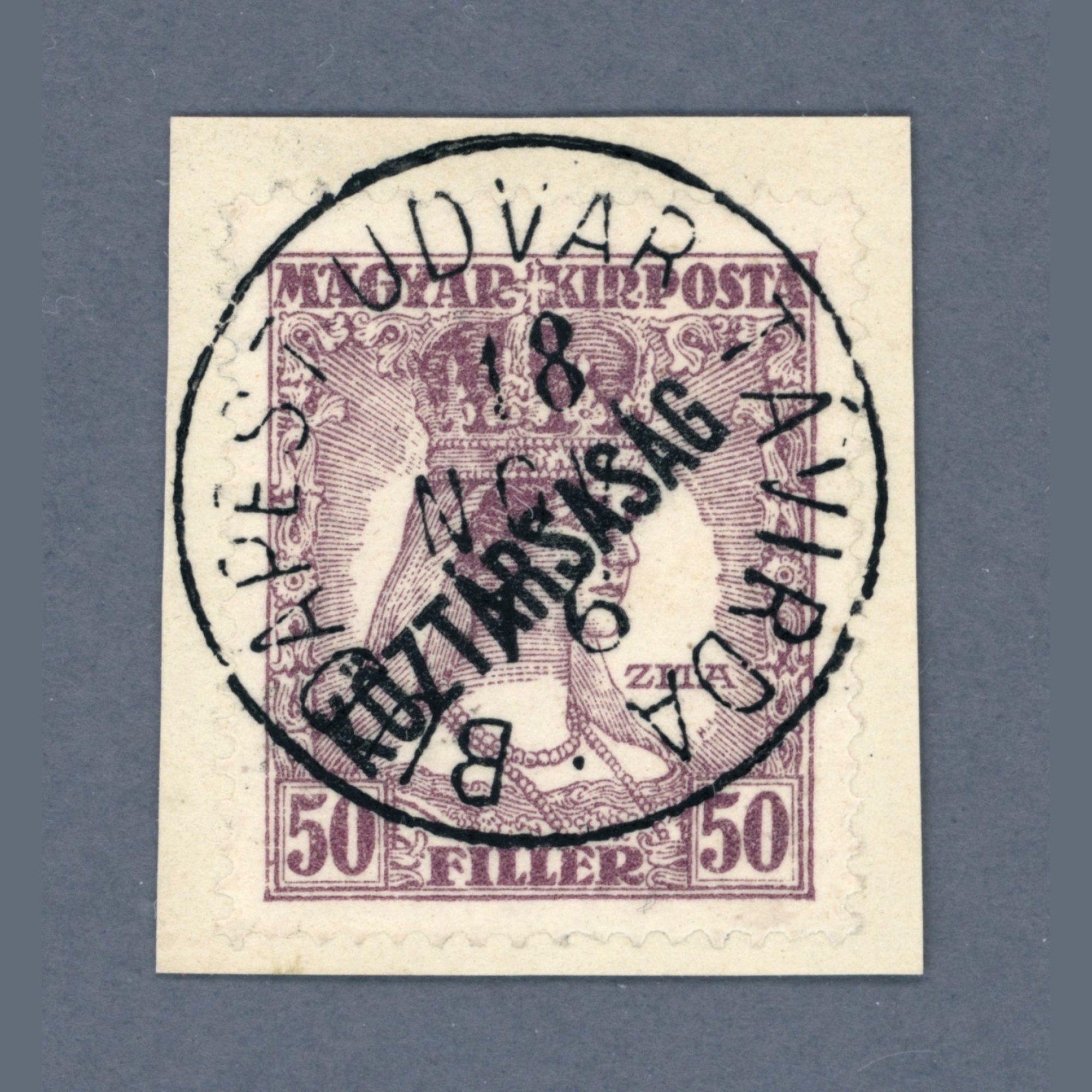 1918 Hungary – Republic / Zita stamp with rare BUDAPEST UDVAR TÁVIRDA postmark | Gudlin only knows it until 1894
