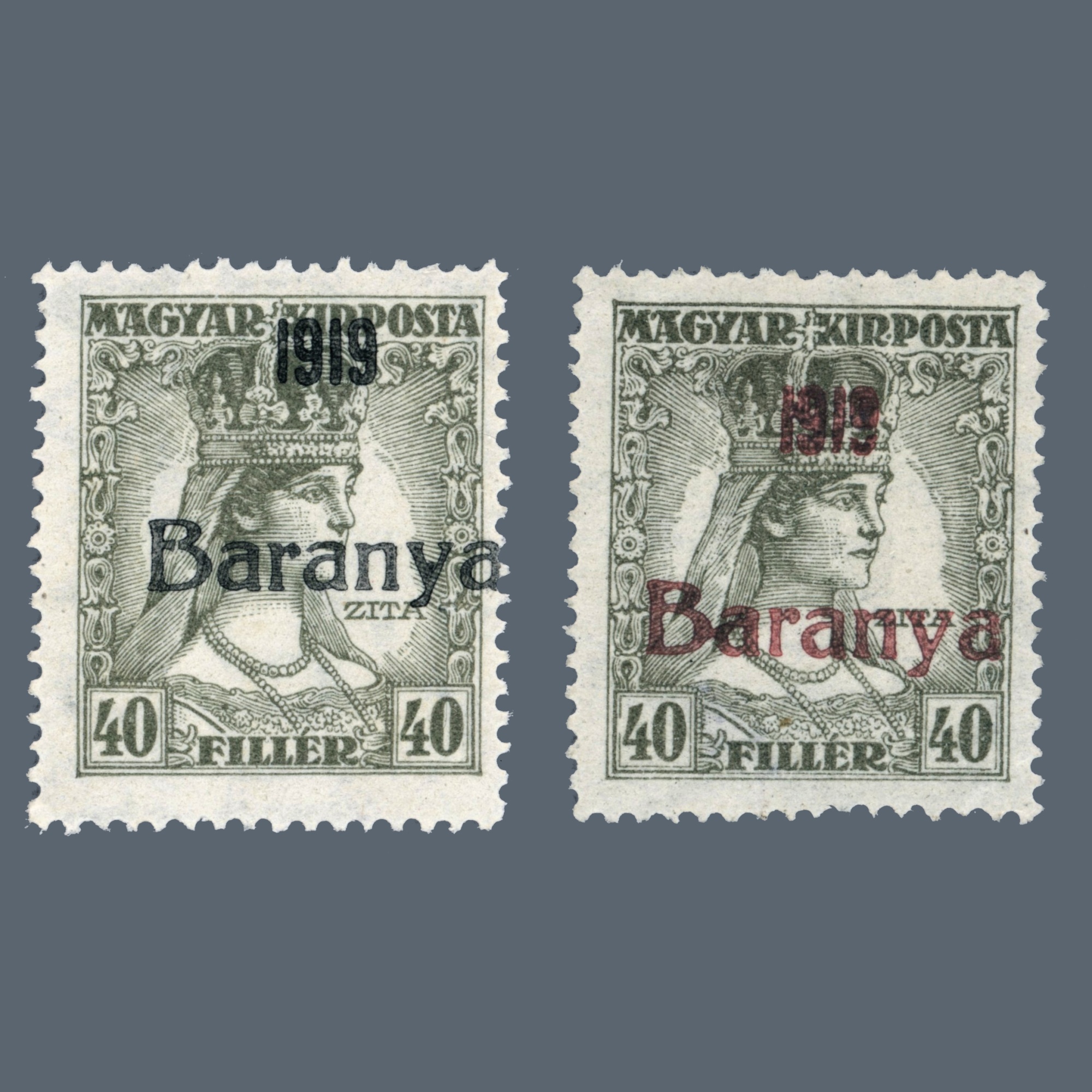 1919 Hungary – Baranya I. Zita 40 filler with black and vermilion overprint | Prüf: Bodor | PHu: 45 EUR