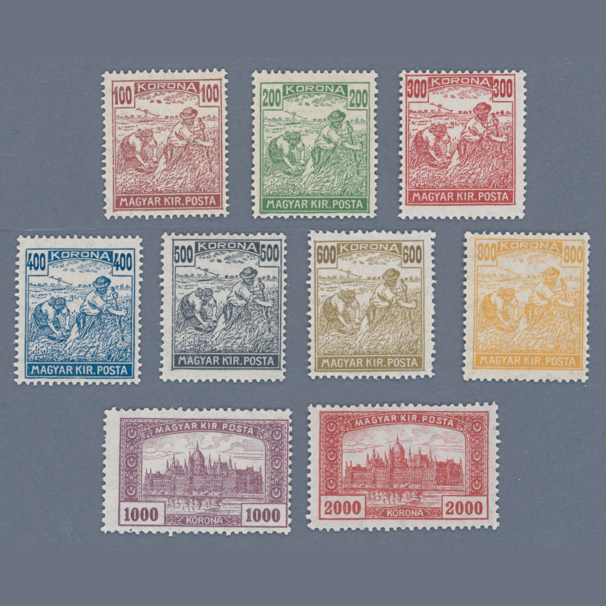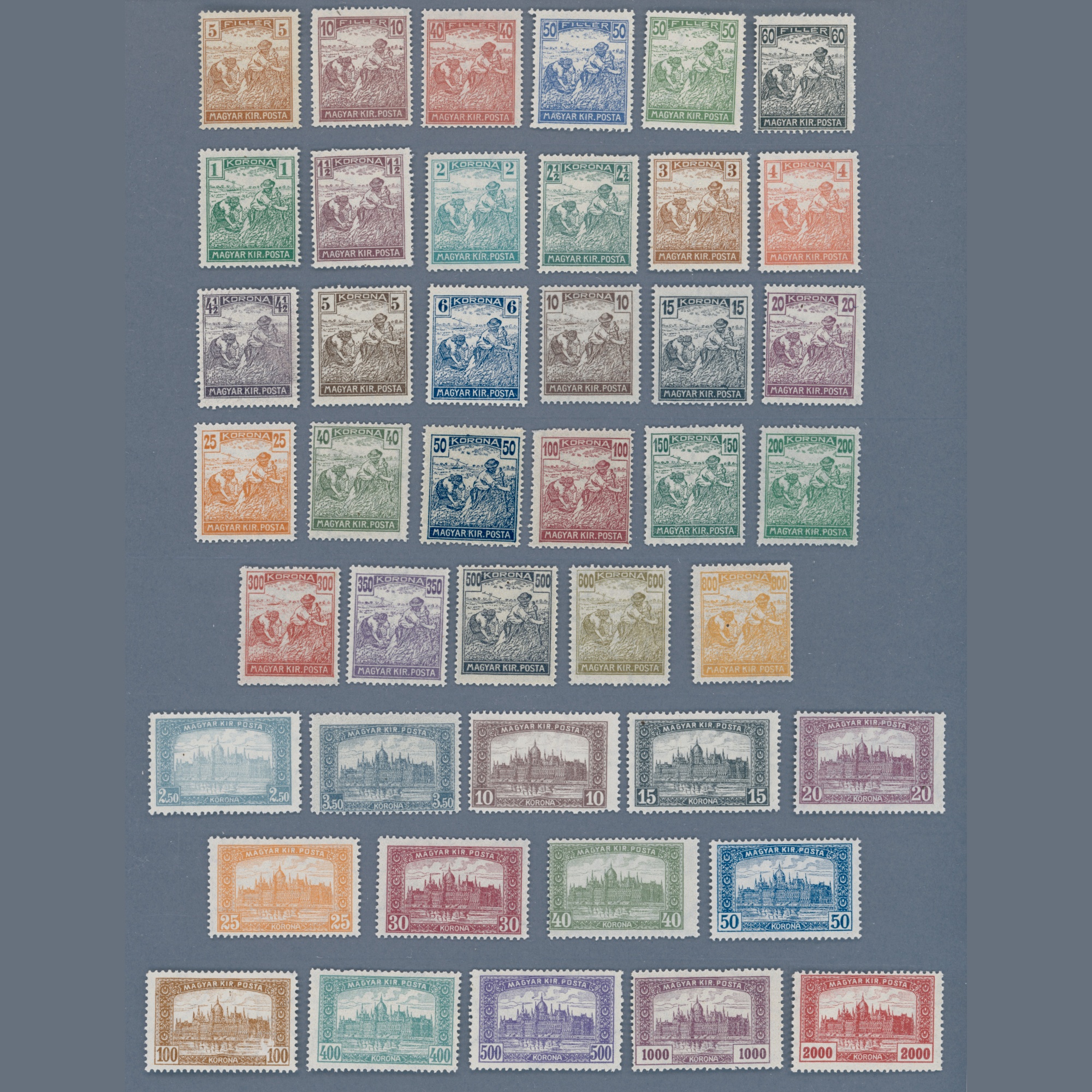 1920-24 Hungary – Reaper and Parliament mint never hinged ** sets | Phu: 58 EUR