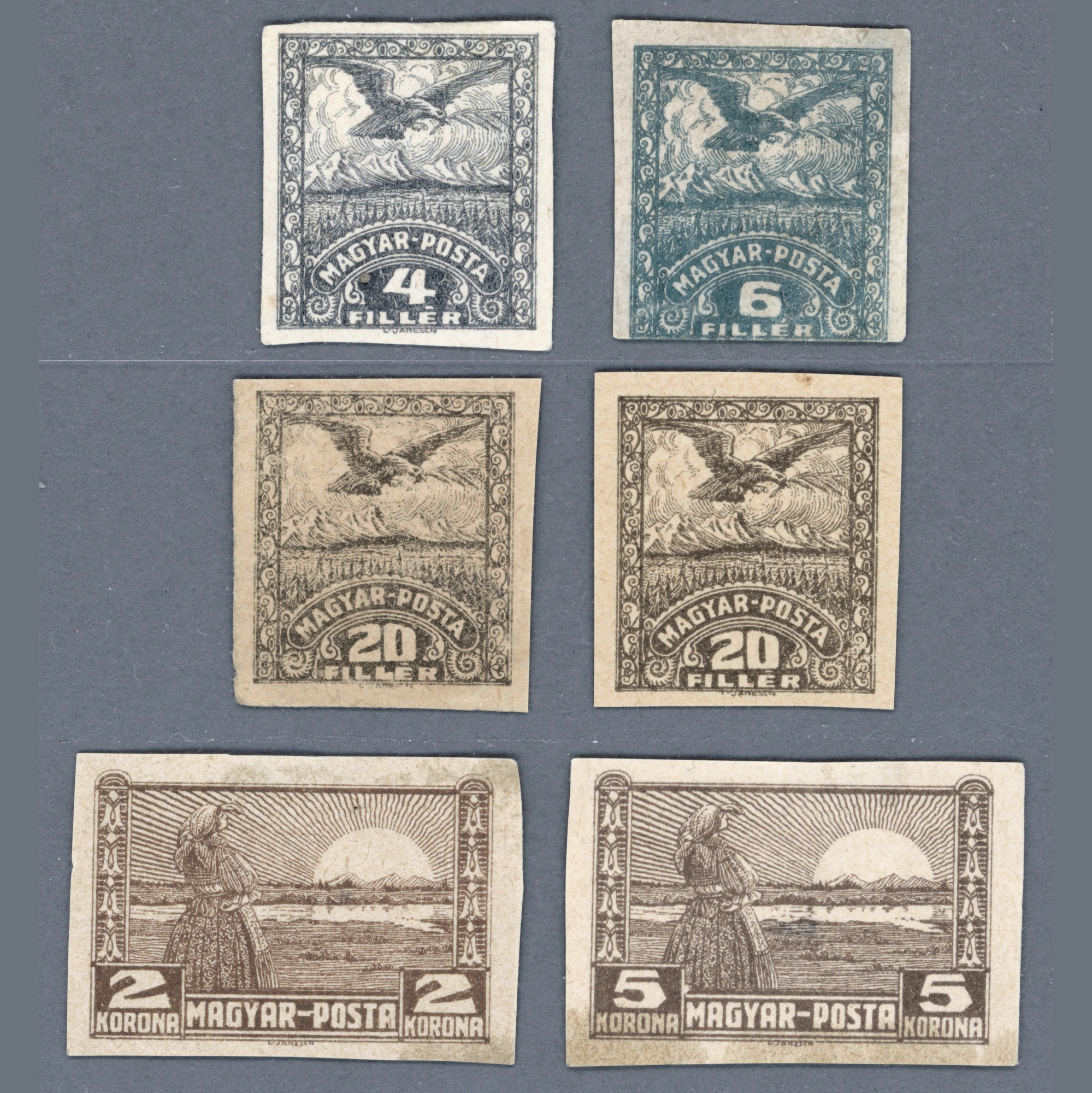 1920 Hungary – Debrecen local issue – various Debrecen II. proofs | Prüf: Bodor