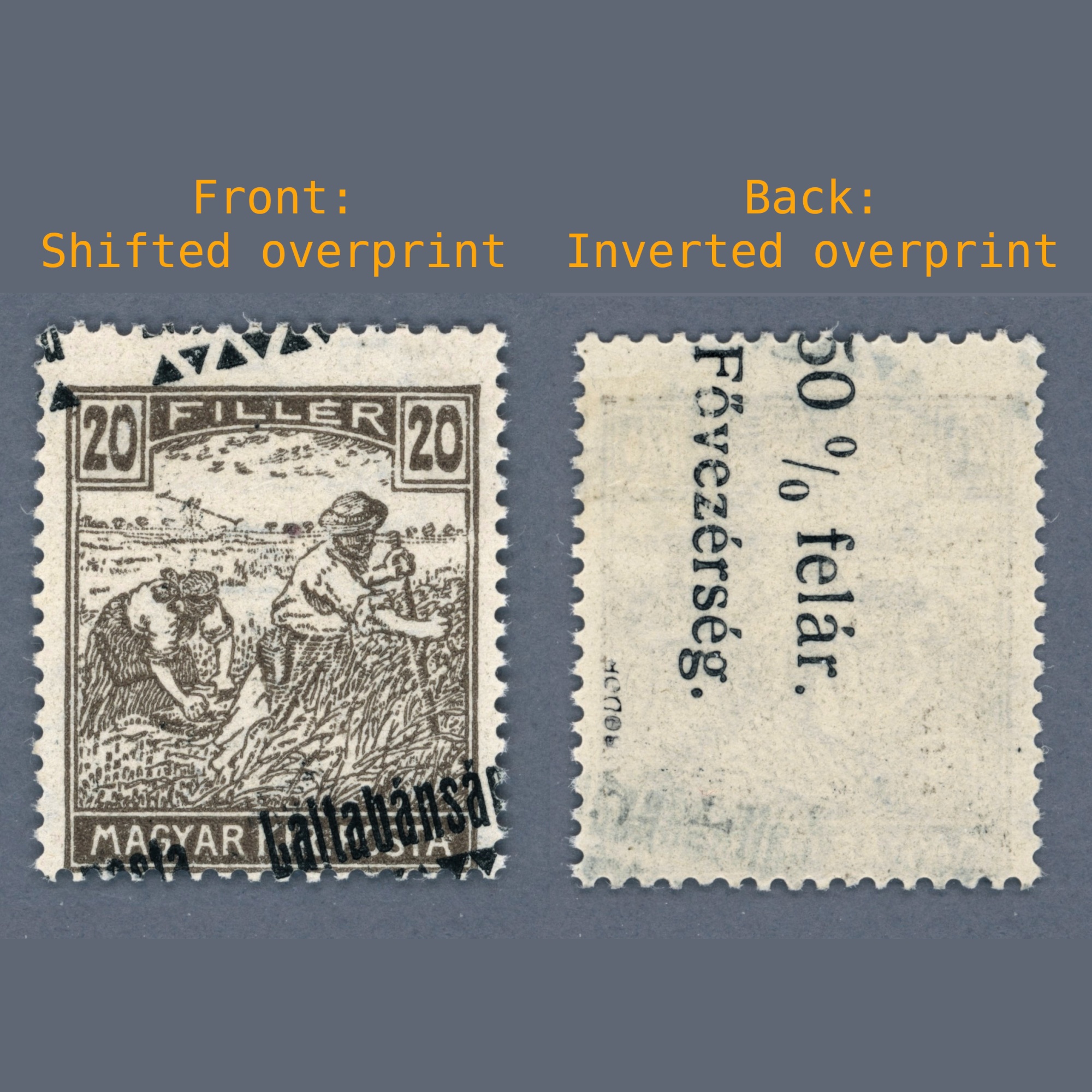 1921 Hungary – Western-Hungary III. – mint hinged reaper 20 filler with double misprint: misplaced overprint on the front, inverted overprint on the back | Prüf: Bodor