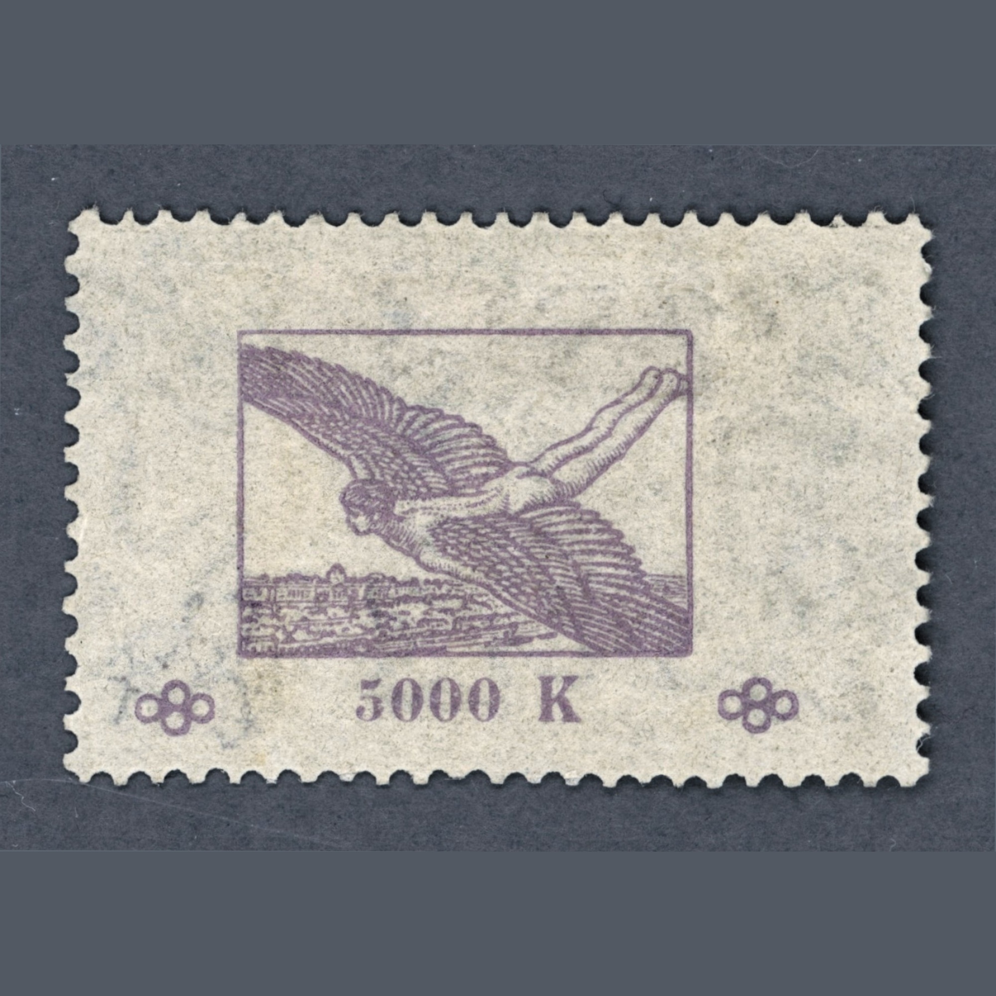 1924 Hungary – Ikarusz 5000 Korona airmail stamp, centre part mint hinged proof on watermarked paper