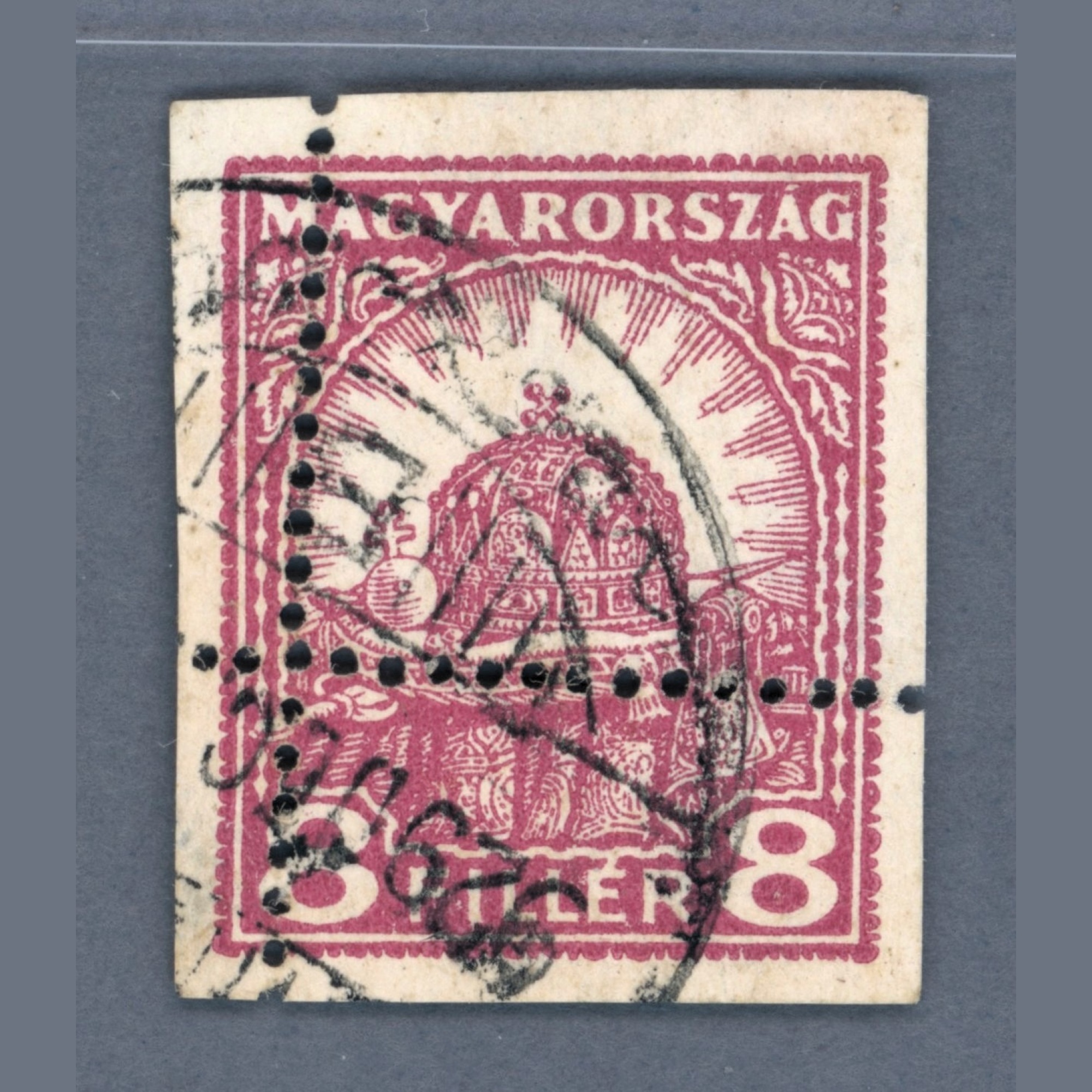 1928 Hungary – Pengő-filler II. used 8 fillér with extreme misperforation – very spectacular piece