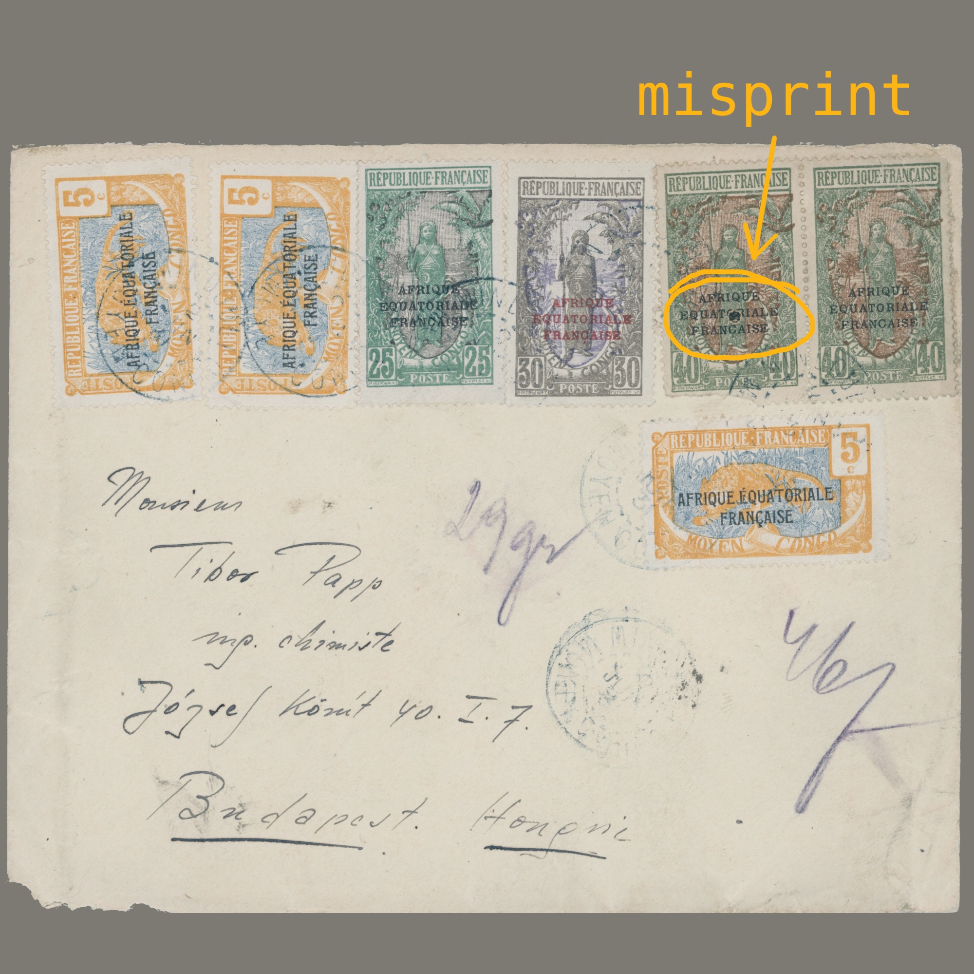 1931 France – French Equatorial Africa – two letters sent to Hungary one of them with Hungarian postage due – very rare postal relation