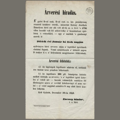 • 1853 Hungary – Auction notice of Győr – RAAB U. / II with previously unknown (!) signet