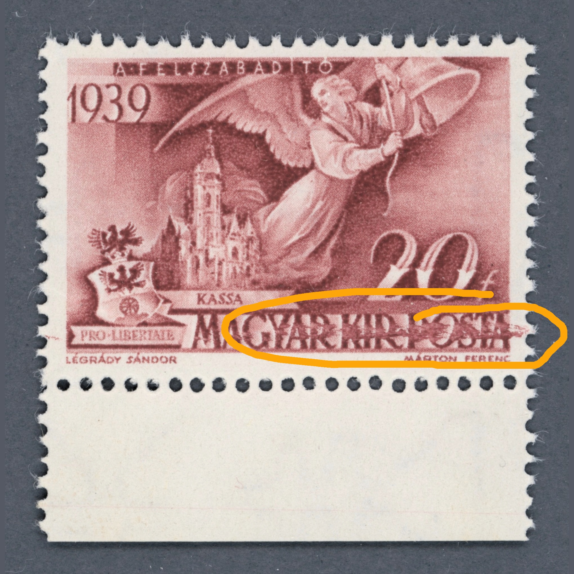 1939 Hungary - Governor's Anniversary mint never hinged ** 20 fillers, with spectacular ink smudging - Image 3
