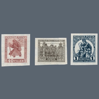 • 1920 Hungary – Prisoner of War imperforated proof set on very thin paper