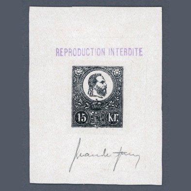 • 1871 Hungary – black print of the 15 kr lithographic stamp – Sperati reproduction