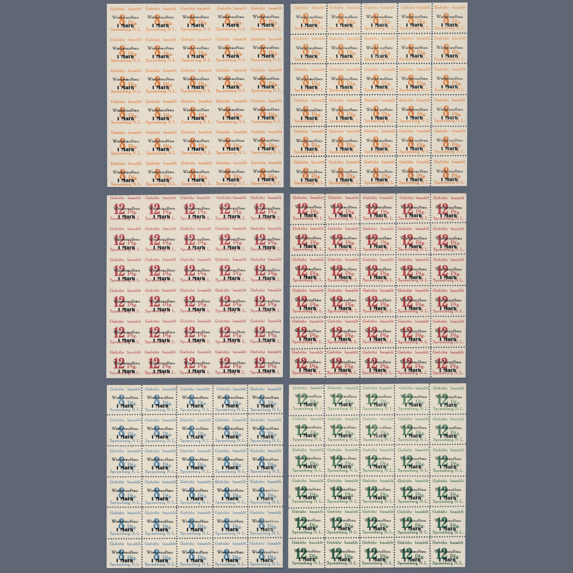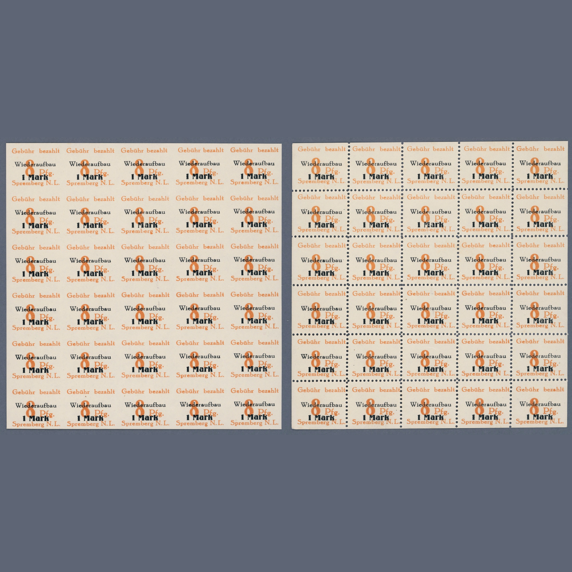 1945 Germany - Spremberg imperforated and perforated overprinted stamps in mint never hinged sheets of 30 - 6 sheets in total