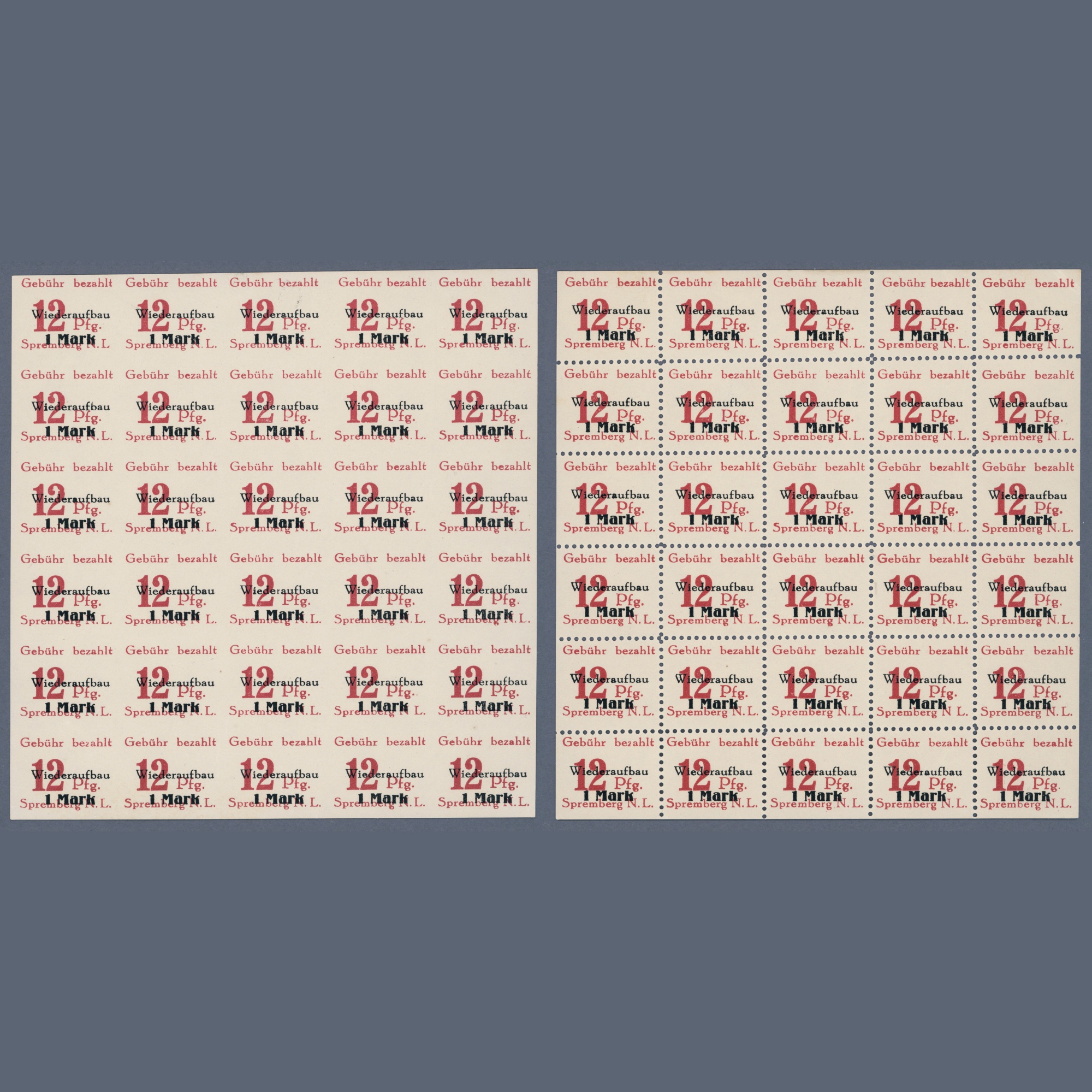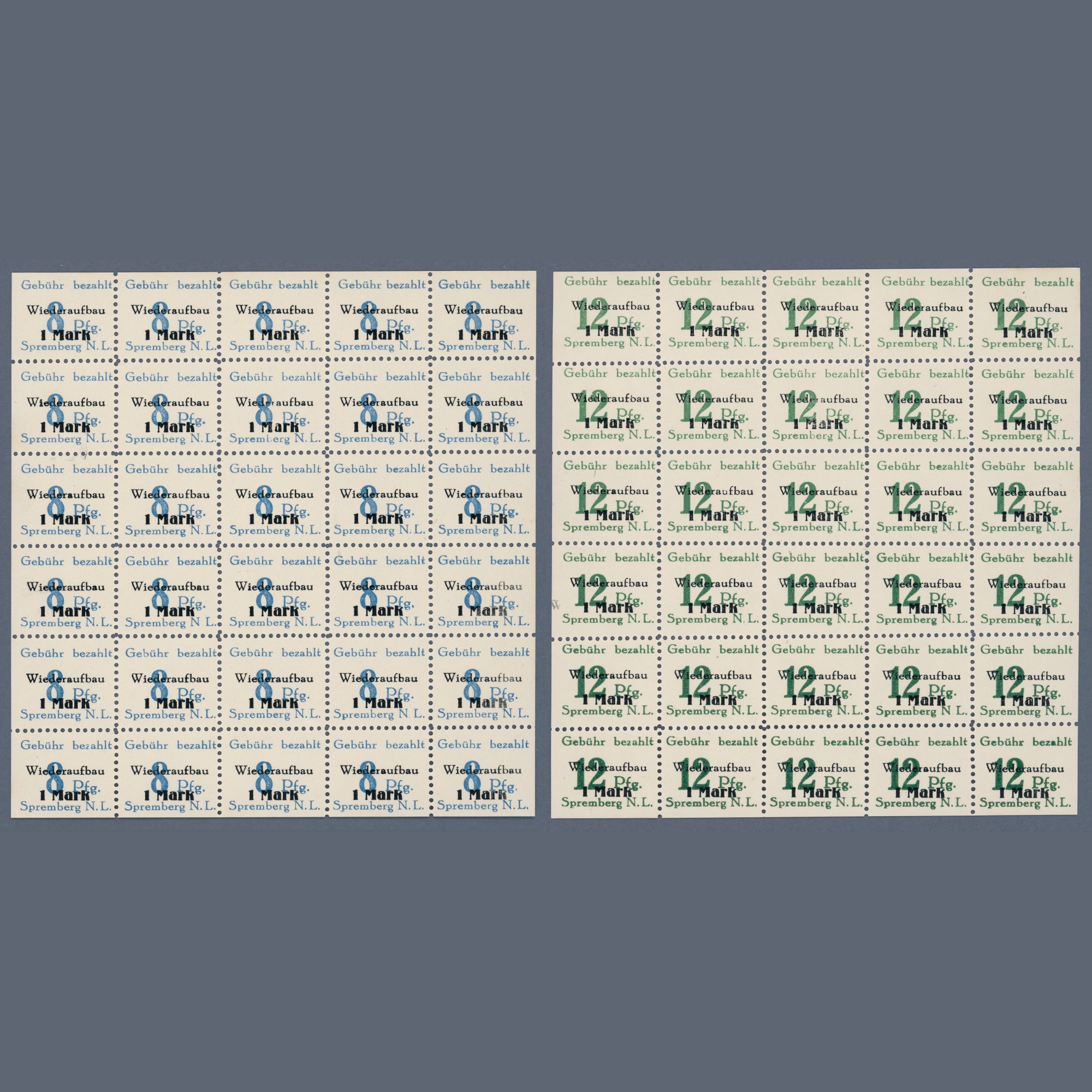 1945 Germany – Spremberg imperforated and perforated overprinted stamps in mint never hinged sheets of 30 – 6 sheets in total
