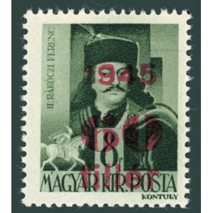 1945 Hungary – 60f / 8f MNH** stamp with missing base print, partial offset on the back | PHu: 40 EUR