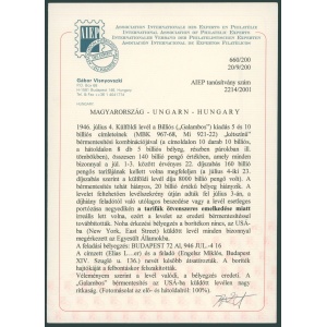 1946 Hungary – 4 July, letter to America franked with pigeon stamps / Attest: Visnyovsky