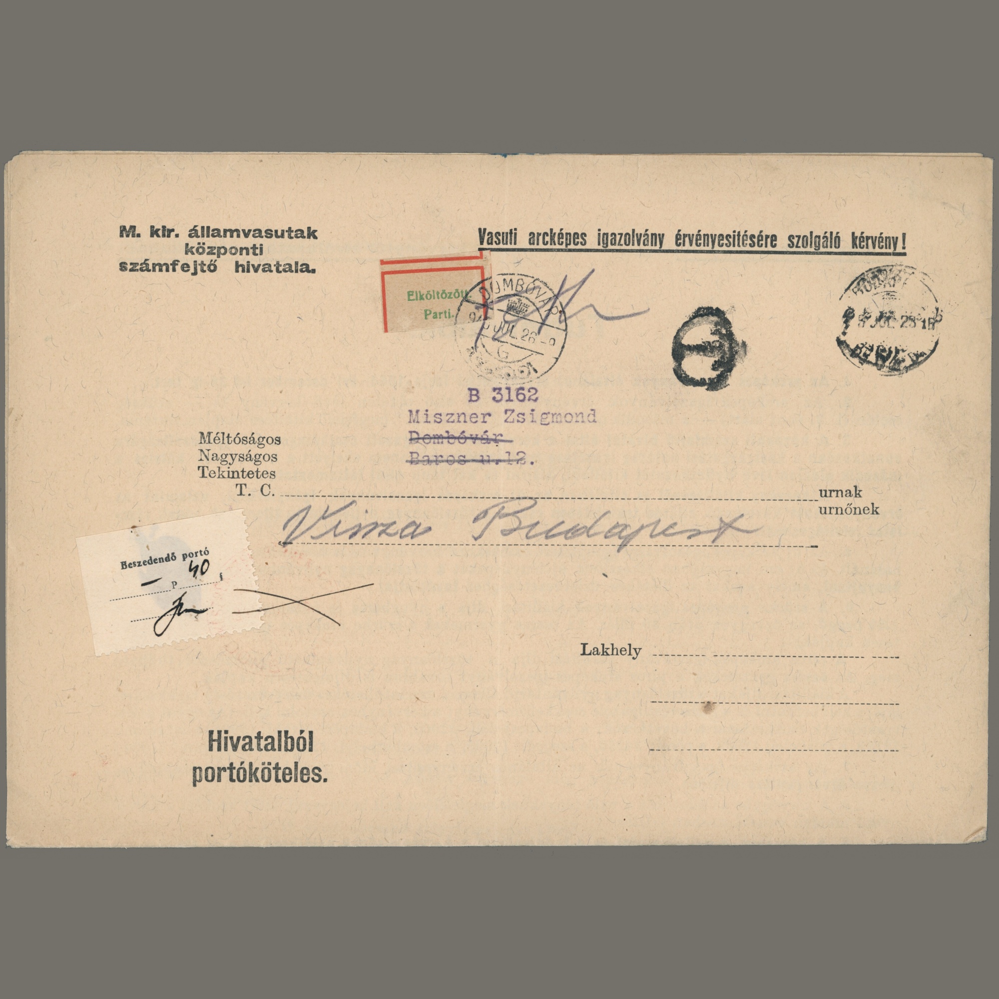 1946 Hungary - Postage due printed matter sent from Budapest to Dombóvár with Dombóvár postage due provisional stamp and sent back to Budapest with "Moved" label - Image 2