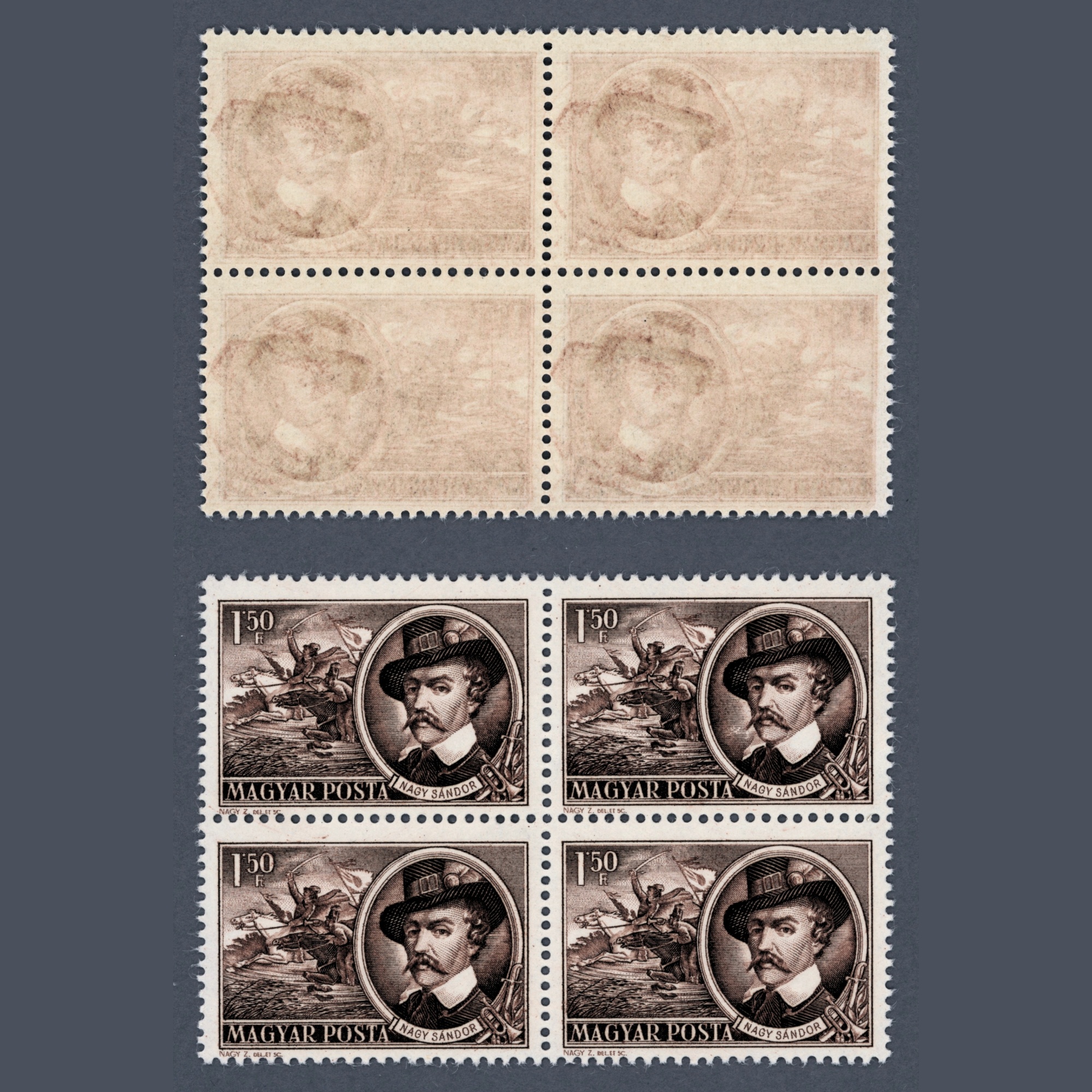 1952 Hungary – Freedom Fighters 1,5 forint value mint never hinged in blocks of four with machine colour offset