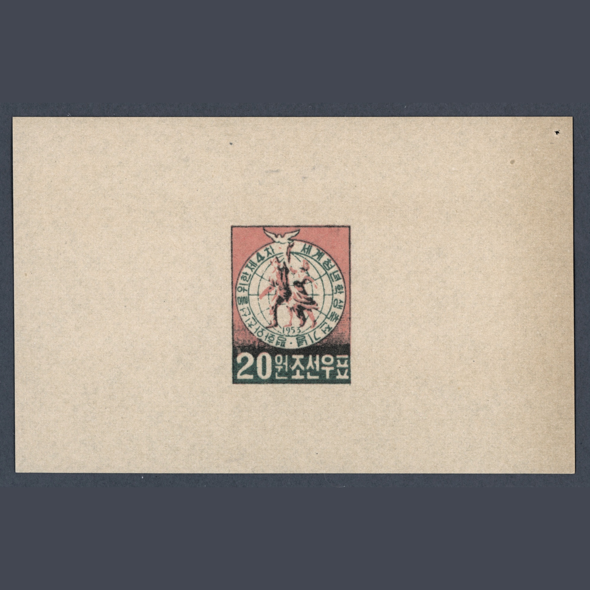 1953 North Korea – both values of the “4th World Festival of Youth and Students” set as one-picture proofs