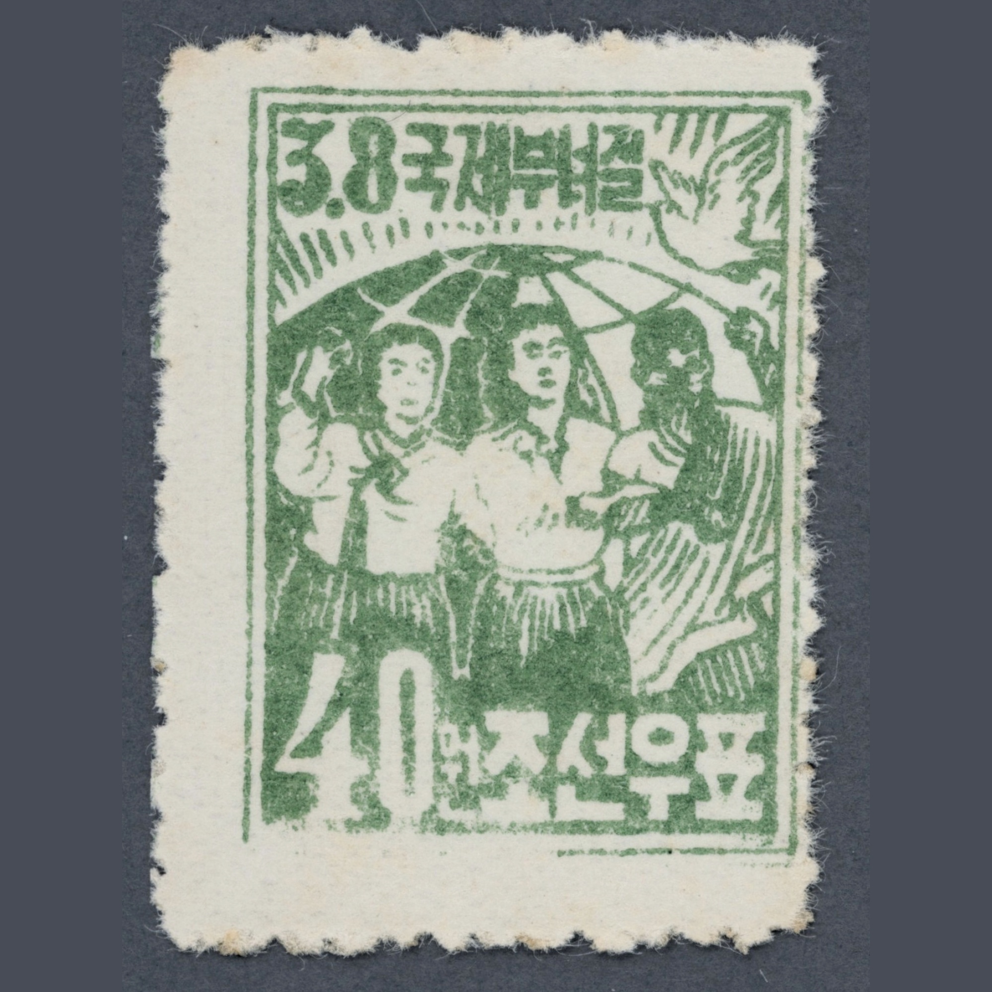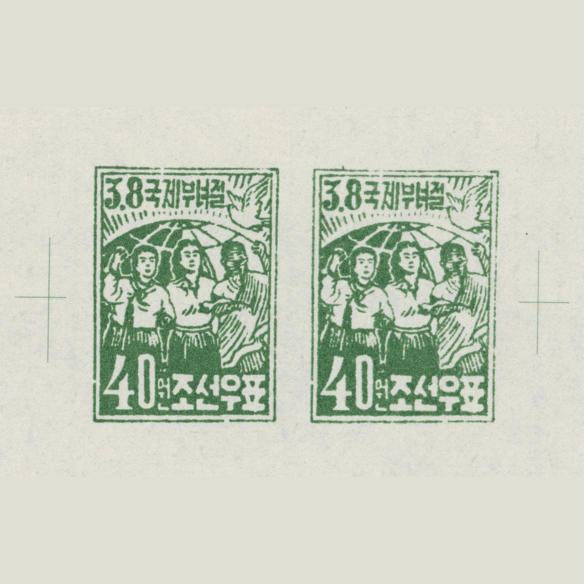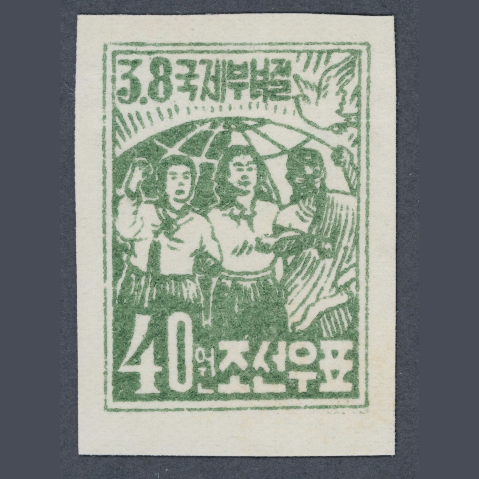 1953 North Korea – “International Women’s Day” 40 won complete set: perforatied, imperforated and two-picture proof