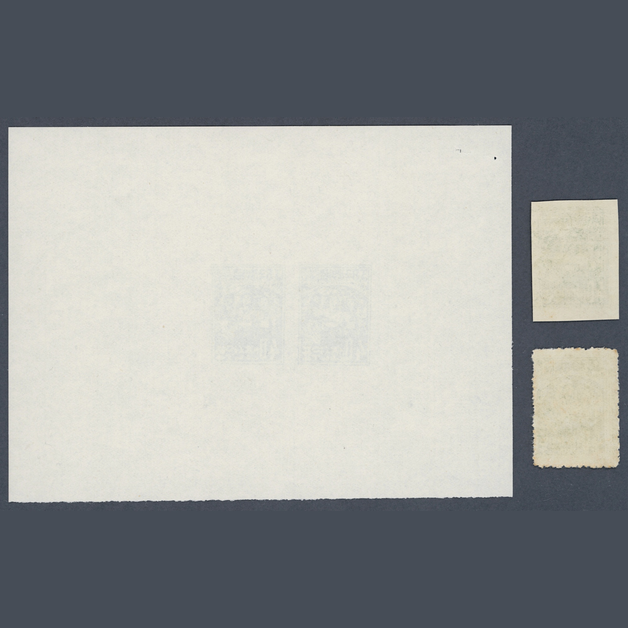 • 1955 North Korea – two picture proof of the „May Day” green 10 won stamp and a perforated stamp