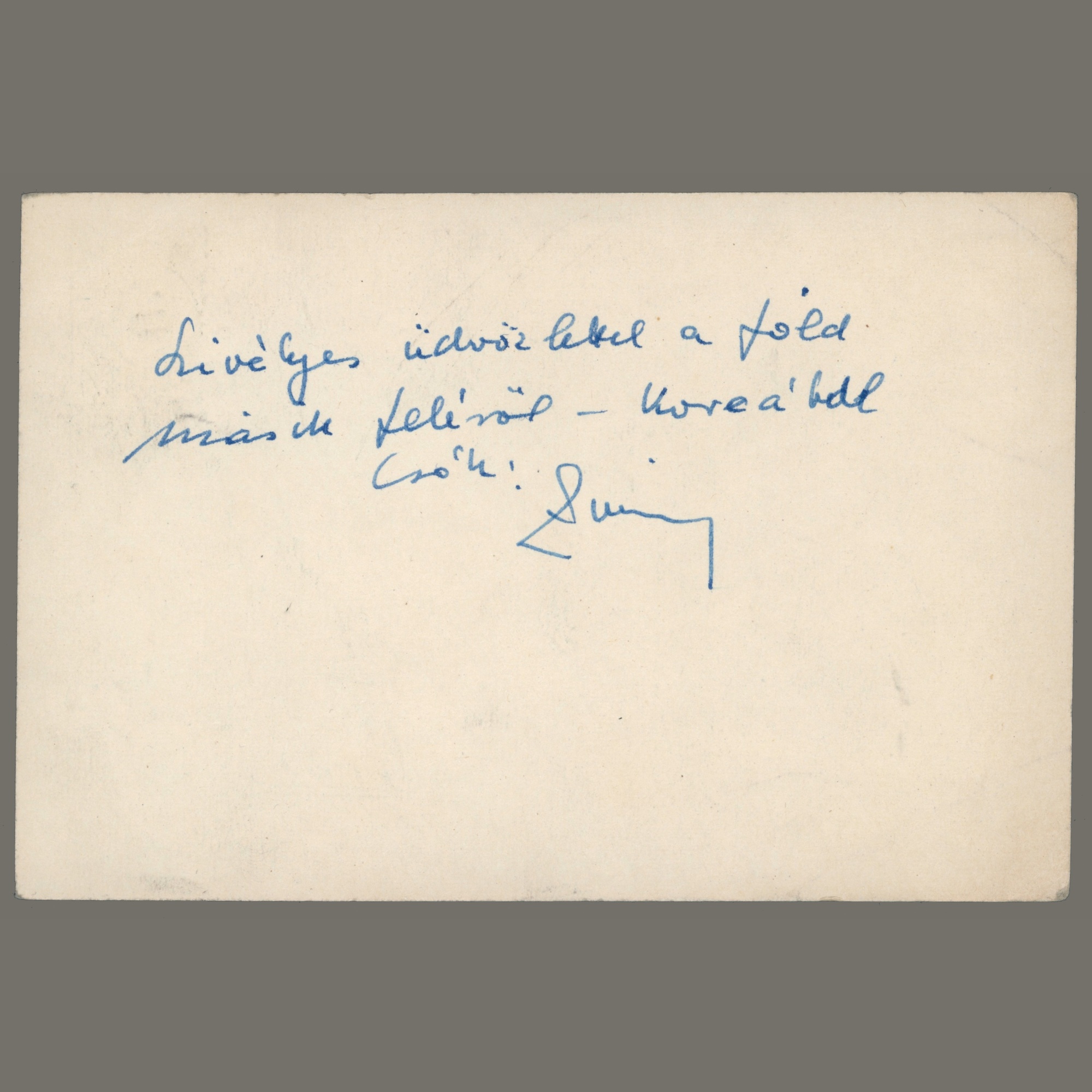 1955 North Korea - Rare postal stationery sent as airmail postcard to Hungary, with 1953 "Liberation of Korea" stamp reprint - Image 2