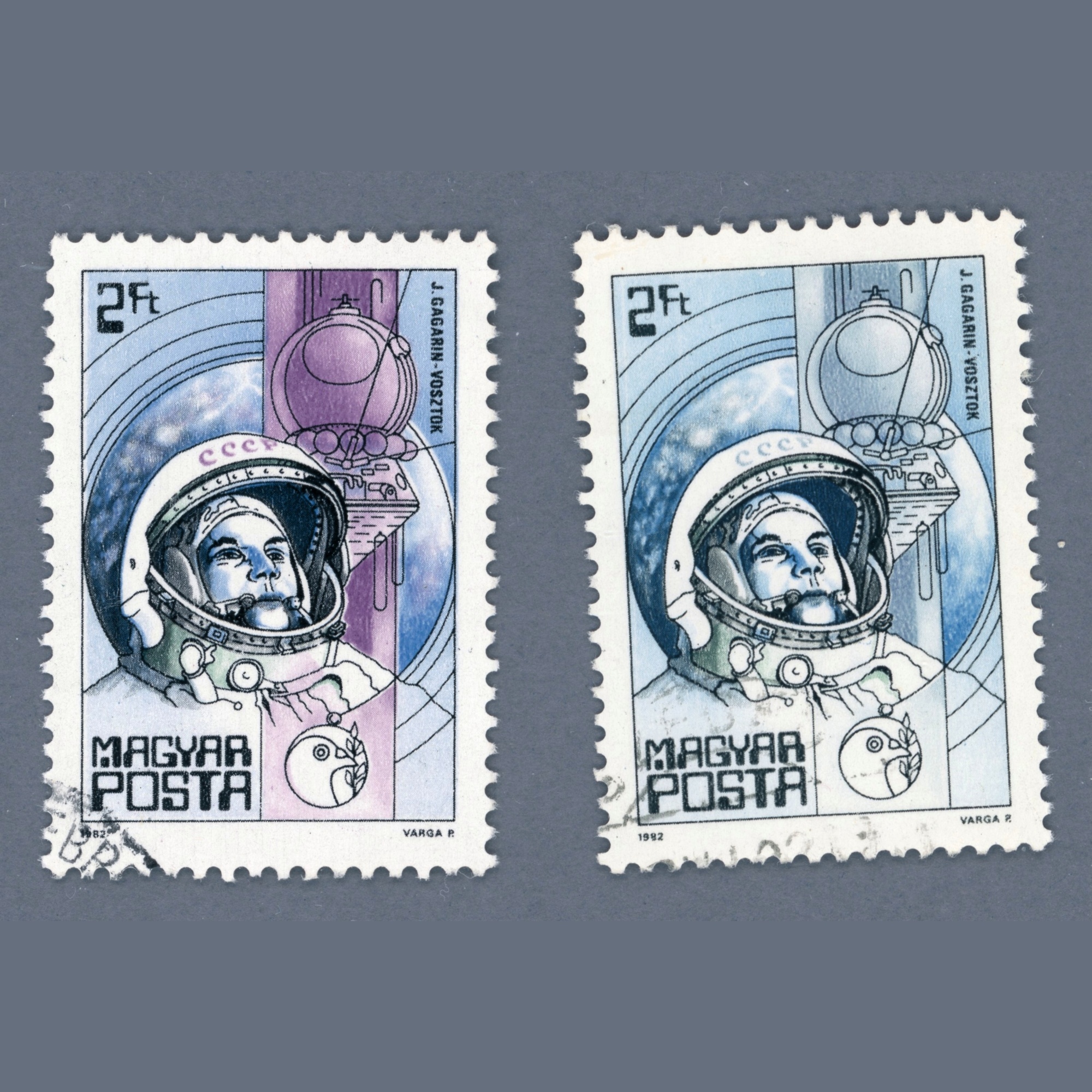 1992 Hungary – “25 years of space exploration” 2 forint value without purple ink print